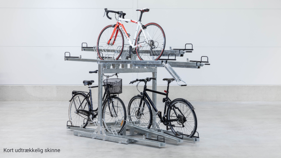 • Kort udtrækkelig skinne - Hjælper med at placere cyklen på det rigtige sted, hvilket giver en organiseret og effektiv parkering.