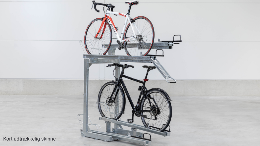 • Kort udtrækkelig skinne - Hjælper med at placere cyklen på det rigtige sted, hvilket giver en organiseret og effektiv parkering.