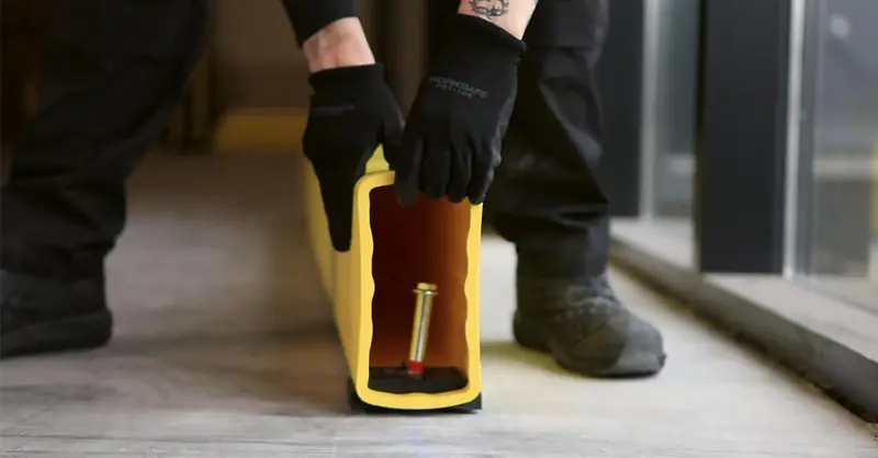 Enkel installation, suppleret med trykmonterede dele og kraftige ekspansionsbolte, passer godt sammen med systemets modularitet. Med vores kapningsskabelon kan du hurtigt foretage de nødvendige justeringer, hvilket gør, at gulvbarriersystemet kan bygges og formes i overensstemmelse med de skiftende sikkerhedskrav i din arbejdsplads